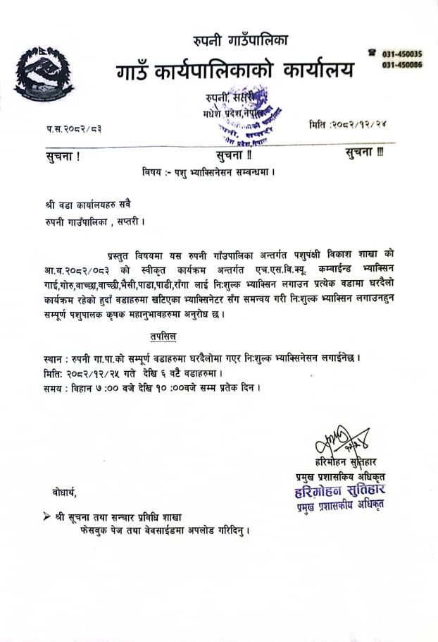 » पशु भ्याक्सिनेसन सम्बन्धमा |