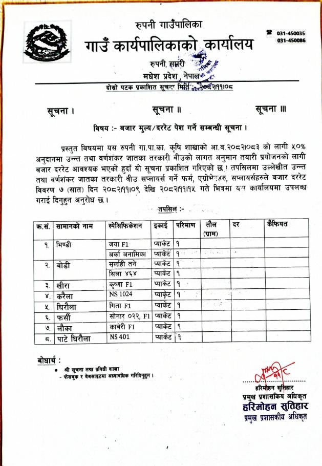 » बजार मूल्य/दरेरेट पेश गर्ने सम्बन्धि सूचना |