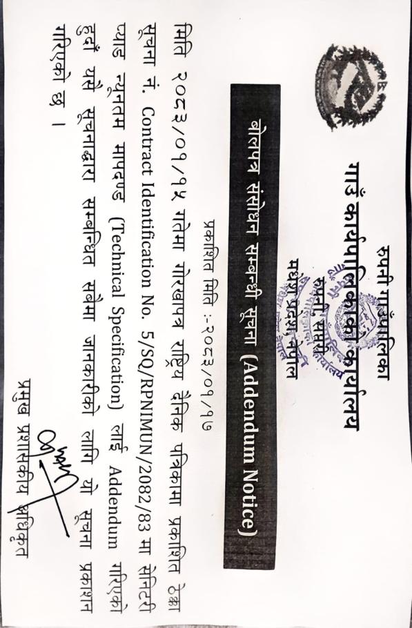 » बोलपत्र संसोधन सम्बन्धी सूचना (Addendum Notice)