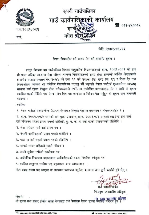 Official: info@rupanimun.gov.np and IT-Section:-ito@rupanimun.gov.np