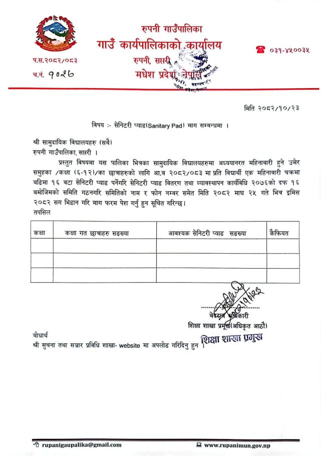 Official: info@rupanimun.gov.np and IT-Section:-ito.rupanimun@gmail.com