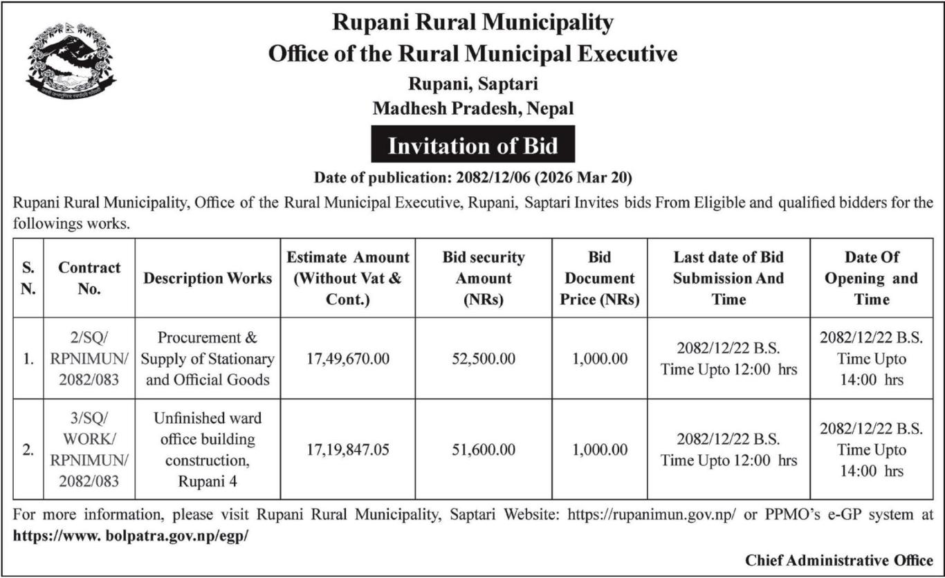 Invitation of Bid