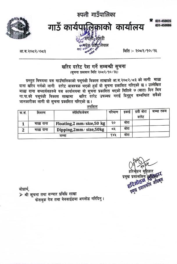 » खरिद दररेट पेश गर्ने सम्बन्धी सूचना |