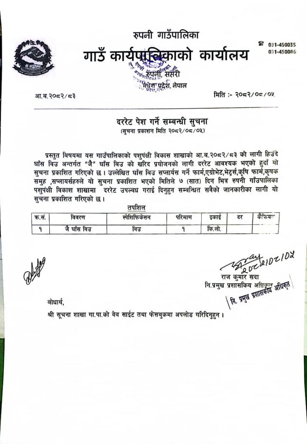 » जै घाँस र टियोसेन्टी घाँस विउको दरेरेट पेश गर्ने सम्बन्धी सूचना|