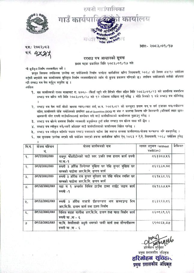 सार्वजनिक खरिद/बोलपत्र सूचना