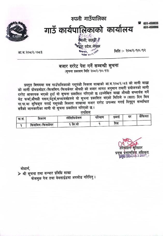 » बजार दररेट पेश गर्ने सम्बन्धी सूचना |
