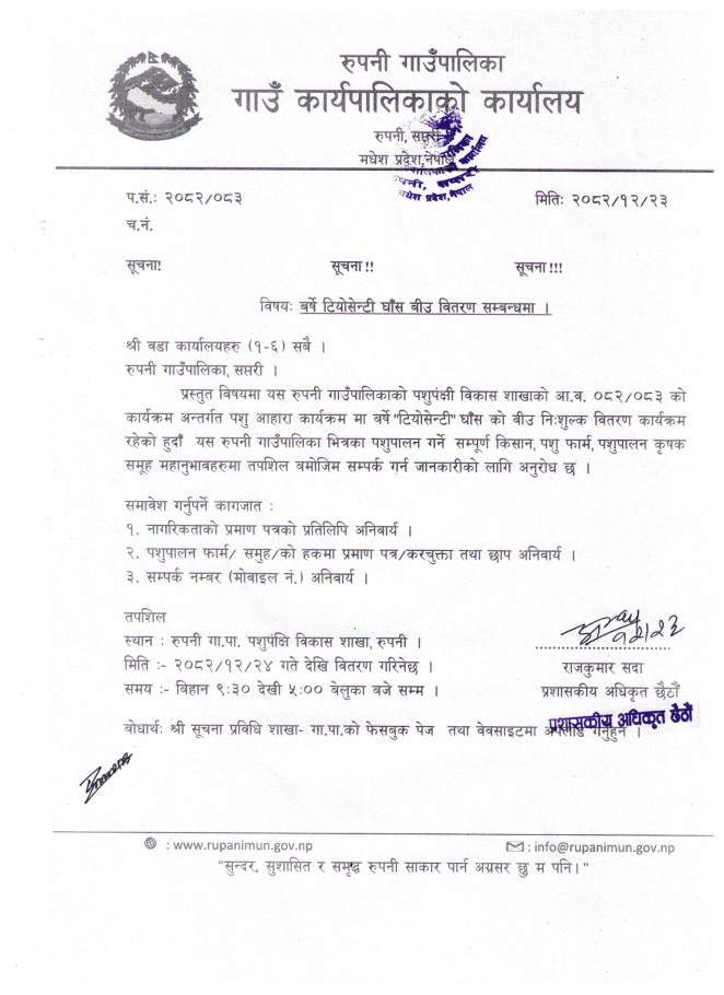 Official: info@rupanimun.gov.np and IT-Section:-ito.rupanimun@gmail.com